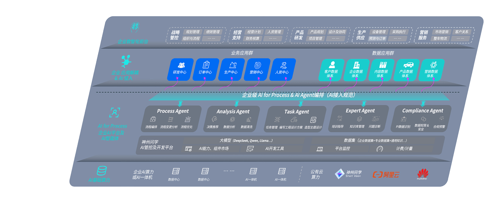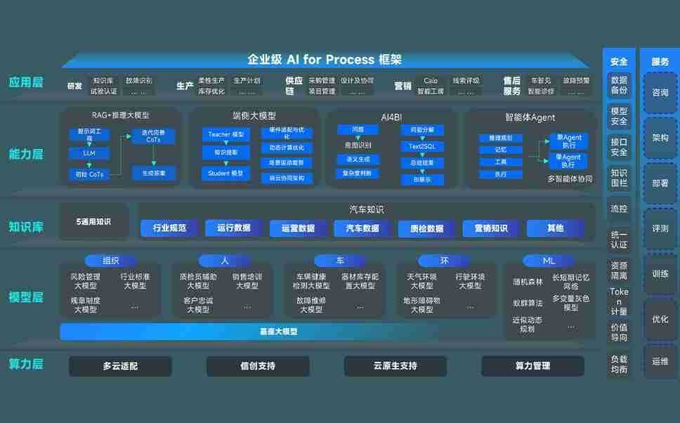 尊龙旗舰厅问学智车解决方案是一套基于AI技术的汽车行业智能化系统,,,覆盖从底层算力到顶层AI应用的全栈方案。。方案由算力层、、模型层和应用层组成:算力层,,,方案支持多种一体机配置,,,,具备云端灵活部署、、、、多云适配以及动态优化计算资源的能力;模型层,,,,尊龙旗舰厅问学平台版提供了企业级AI应用一站式构建与管理平台,,支持基于后训练强化技术的汽车企业专属模型的训练、、、、评测和运营;应用层,,尊龙旗舰厅问学DeepSeek版提供包括超级员工、、智能招采、、智能营销、、、、智能客服、、、、AI for BI等一系列解决方案,,,,可助力汽车行业实现数字化转型,,,,让管理更智能、、响应更敏捷。。